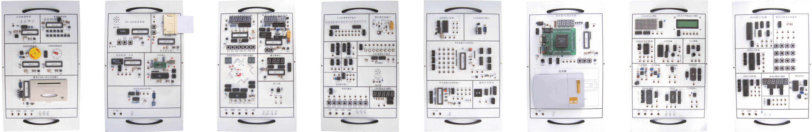 8279 接口電路、 8255 I/O 擴展、 8155 I/O 擴展、動態(tài)掃描顯示模塊、轉換接口、 MC14433 、整列式鍵盤實驗模塊