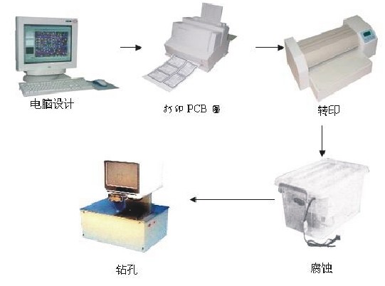 系統(tǒng)配置:計算機、激光打印機、轉印機、腐蝕桶、高速視頻鉆、轉印紙、合金鉆頭