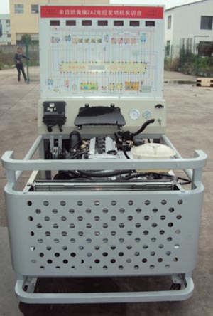 設備臺架:一體式設備臺架,燃油箱、蓄電池、電源總開關、斜面式儀表工作臺、數(shù)據(jù)檢測面板,寬度為100mm的檢測儀器放置區(qū)、高清電路原理圖、實物安裝區(qū)、設備故障設置區(qū)(考核系統(tǒng))、電氣箱、帶有百葉窗的防護隔板、帶有散熱孔的水箱護網(wǎng)、考核系統(tǒng)、系統(tǒng)壓力表、進氣歧管壓力表、控制機構、萬向腳輪等組成。